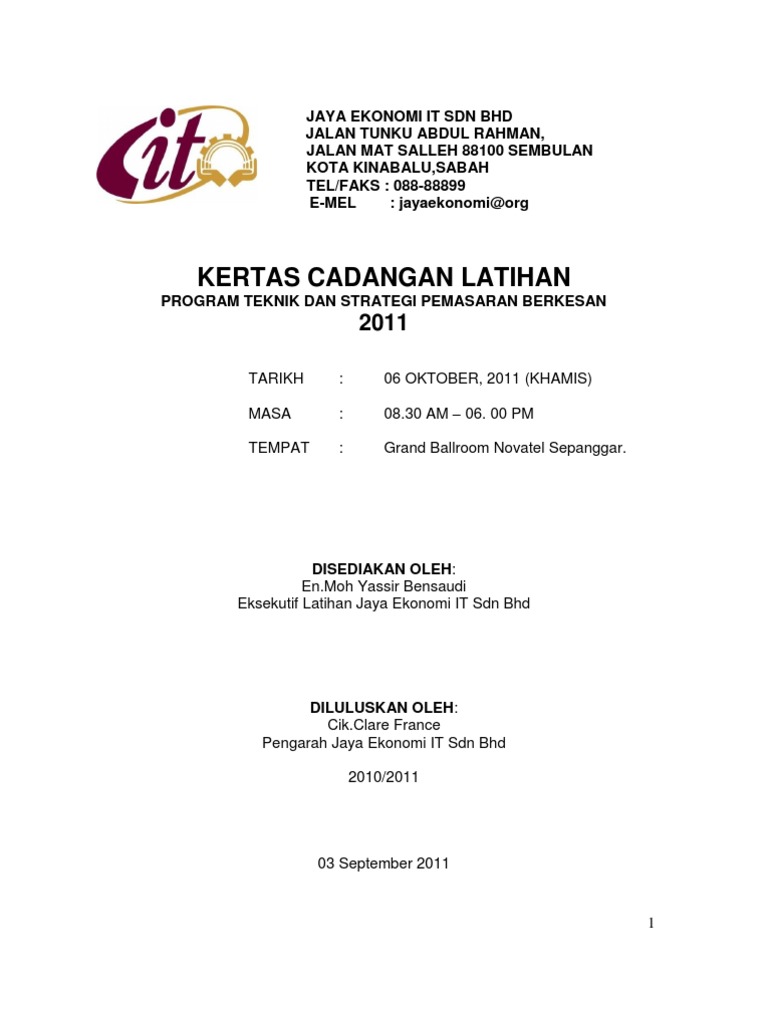 Kerja kursus perniagaan kertas 3. 08 2012 141710 views suju2403 follow recommended. Kertas Cadangan Program Latihan.